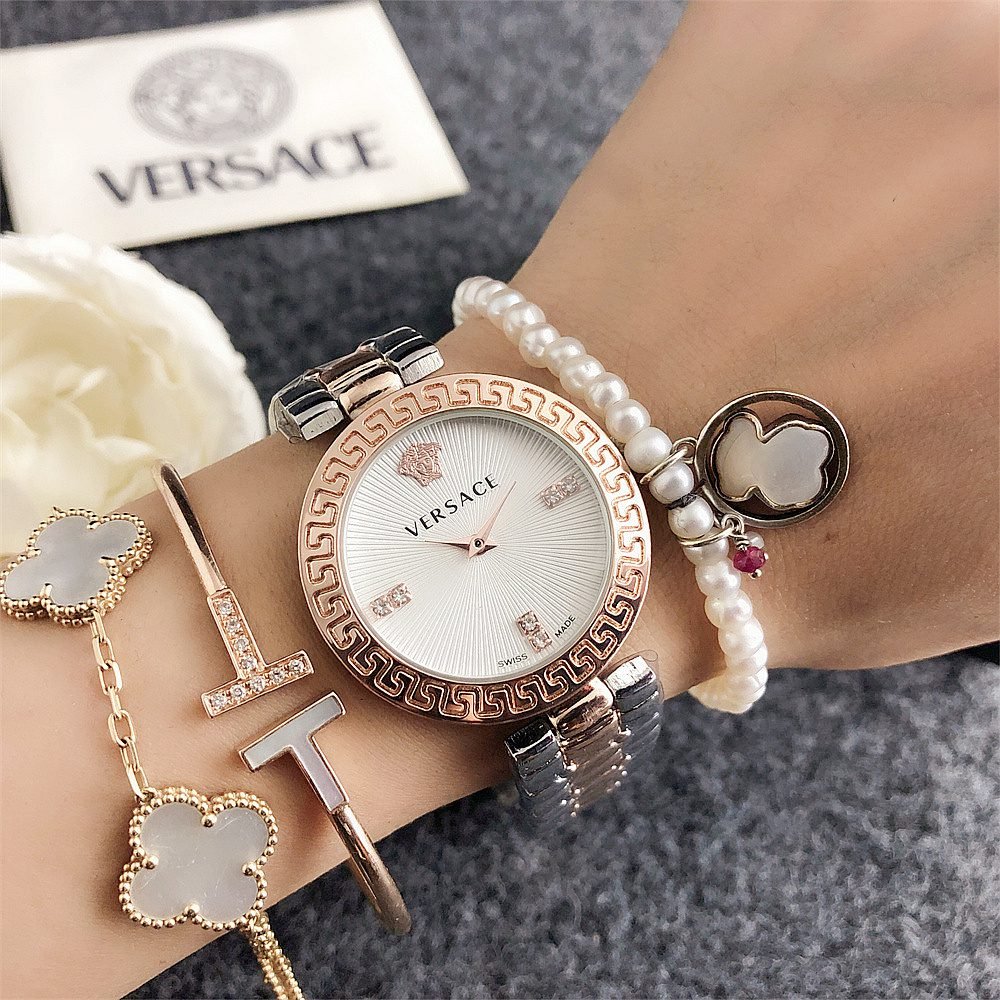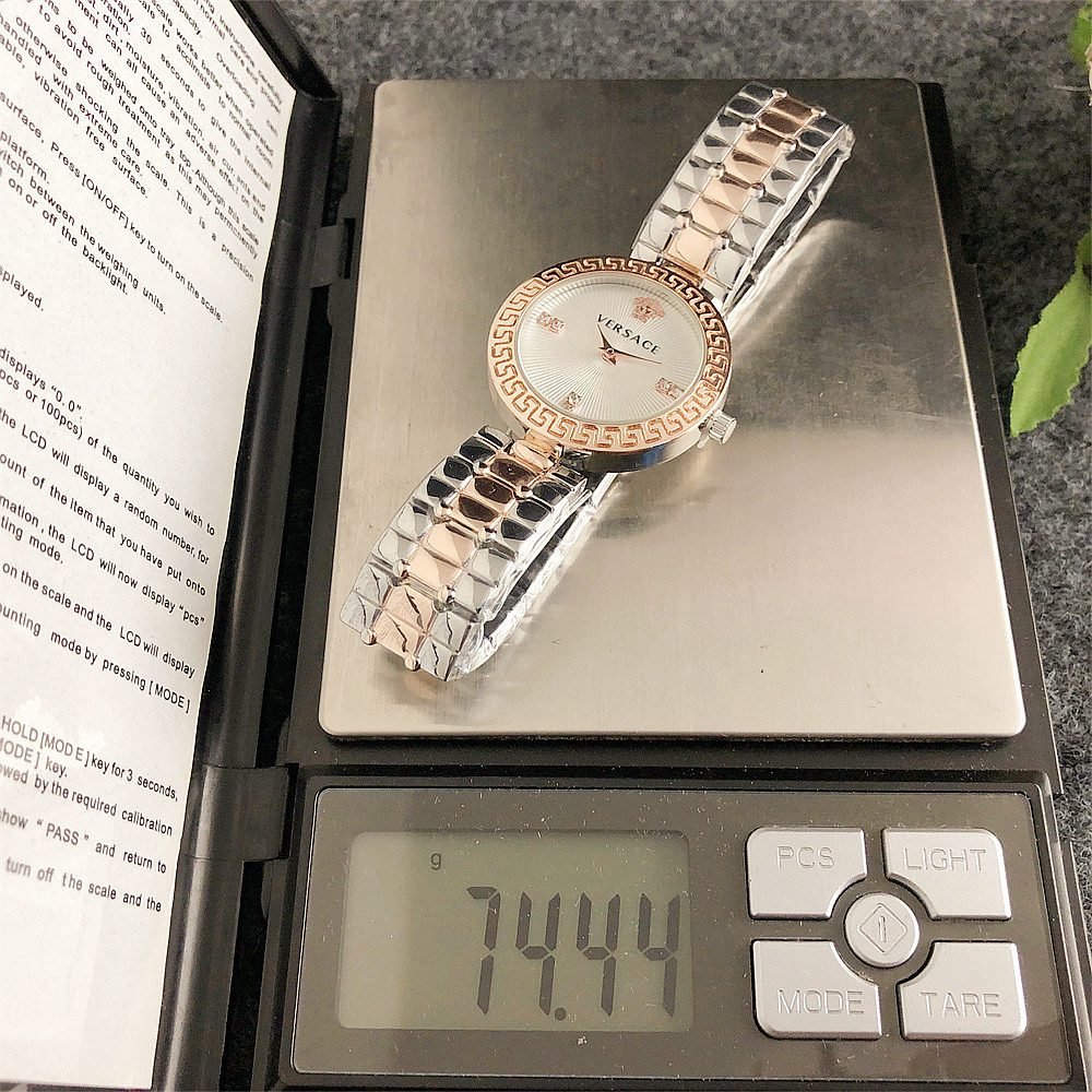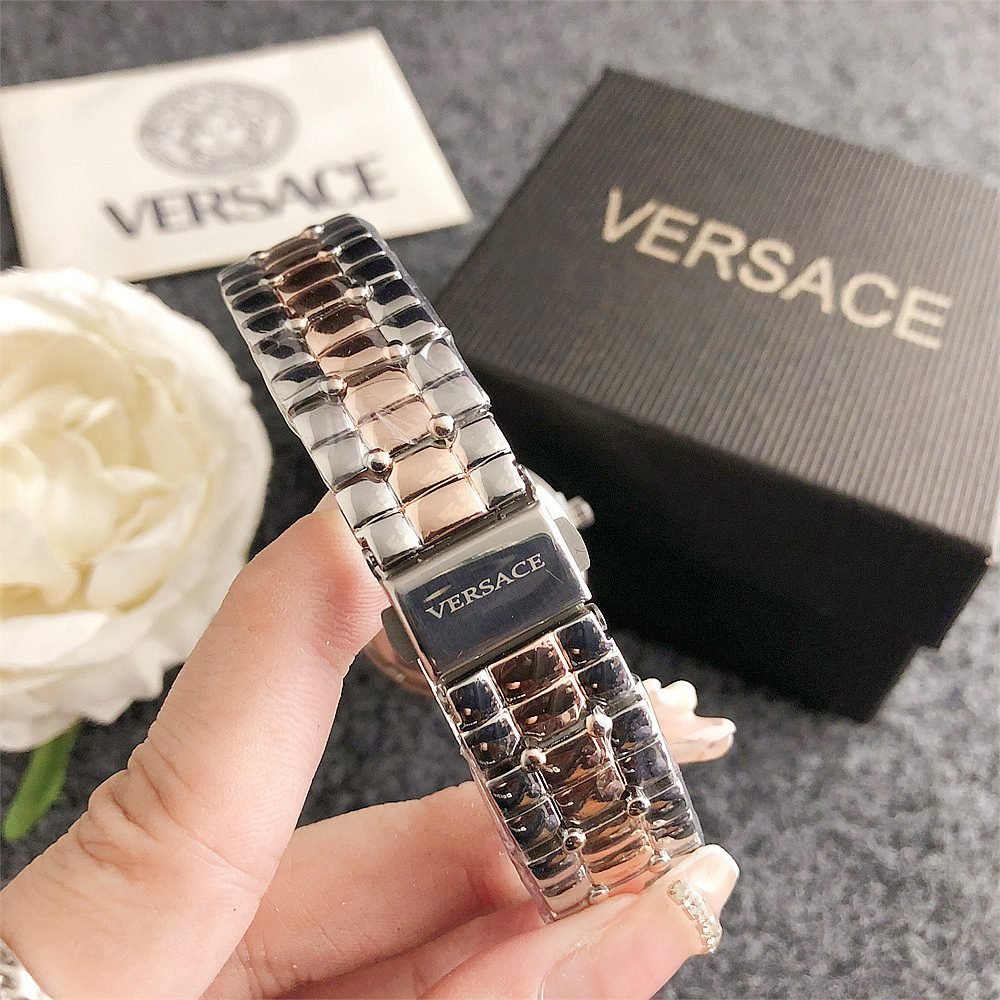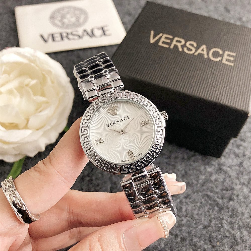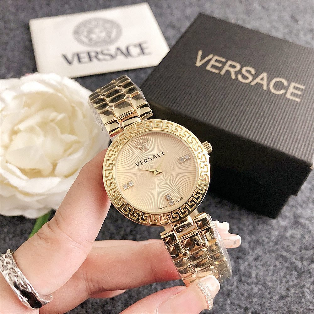 Decoration: The top ring of the watch case is decorated with Greek ripple patterns and Versace logo, showcasing the brand’s unique style.