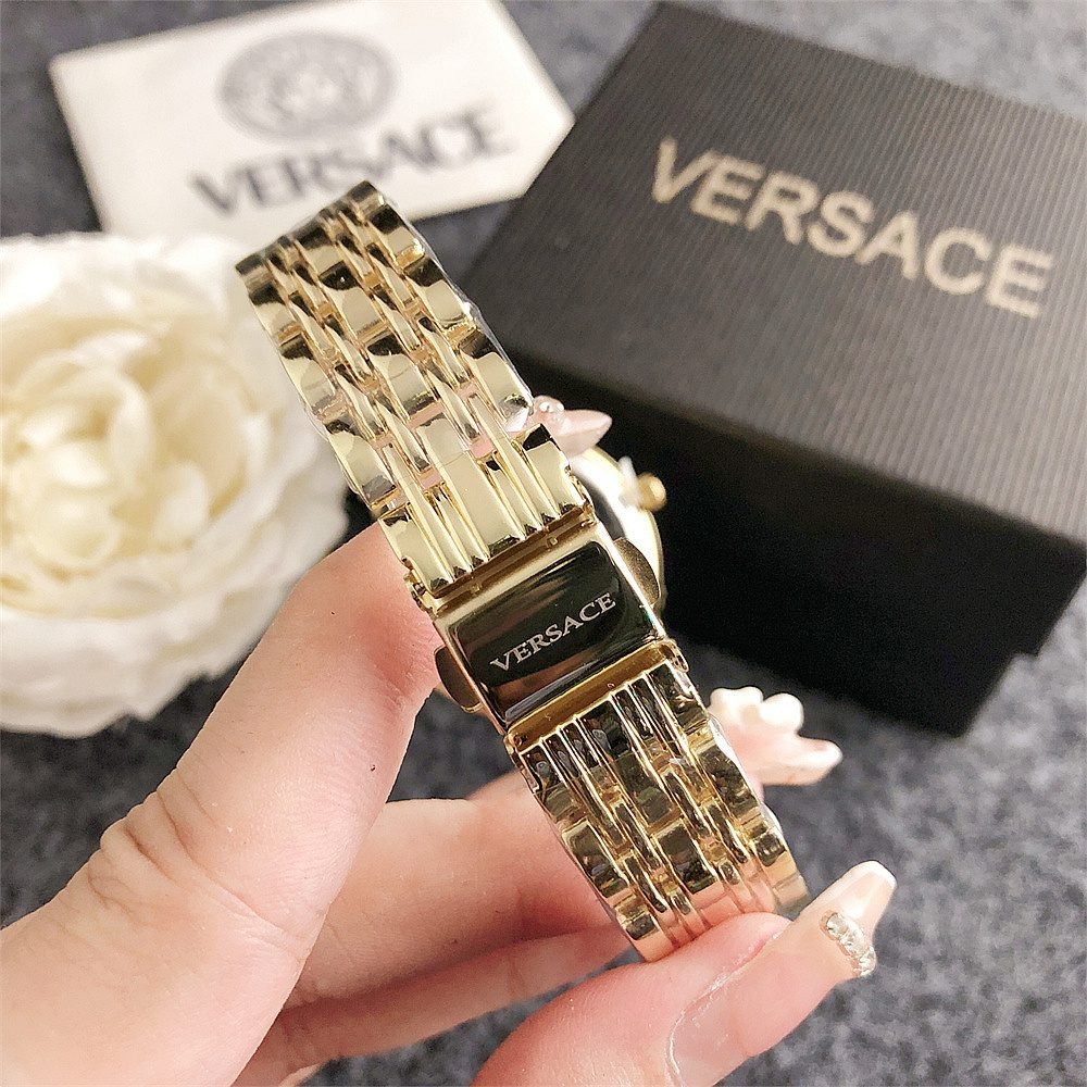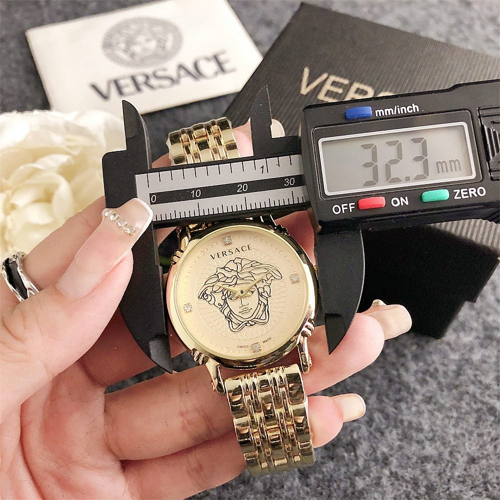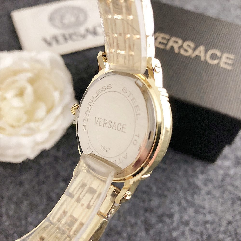 Decoration: The top ring of the watch case is decorated with Greek ripple patterns and Versace logo, showcasing the brand’s unique style.
