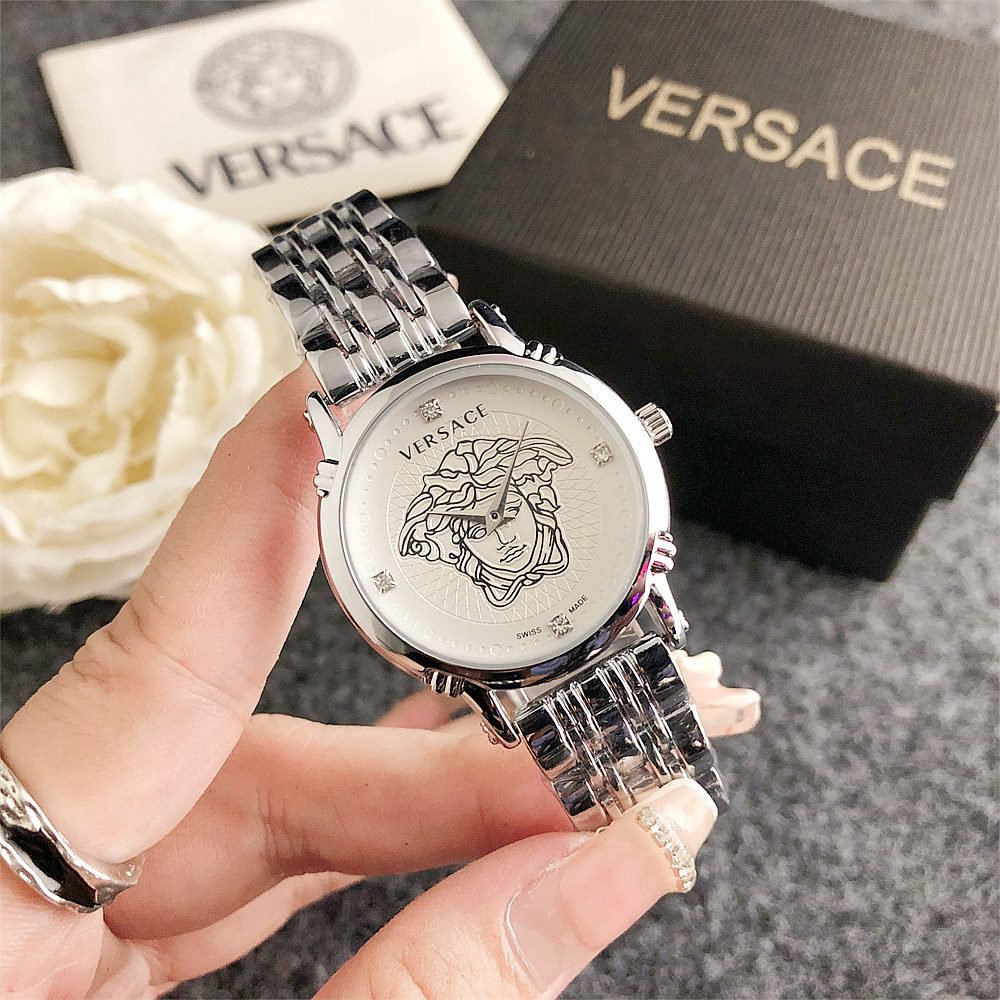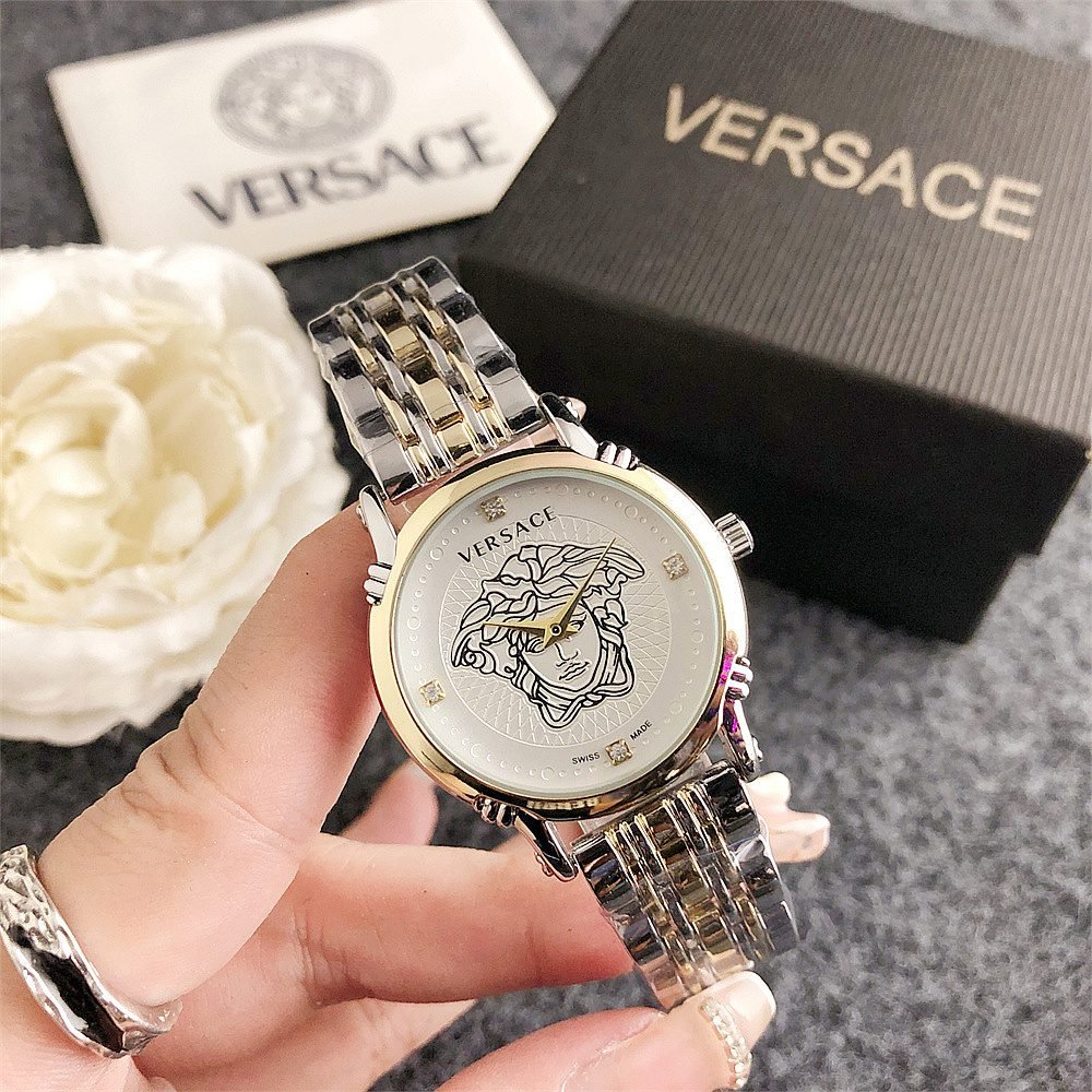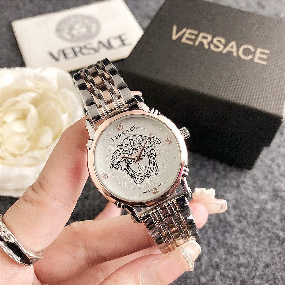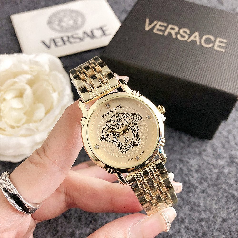 Decoration: The top ring of the watch case is decorated with Greek ripple patterns and Versace logo, showcasing the brand’s unique style.
