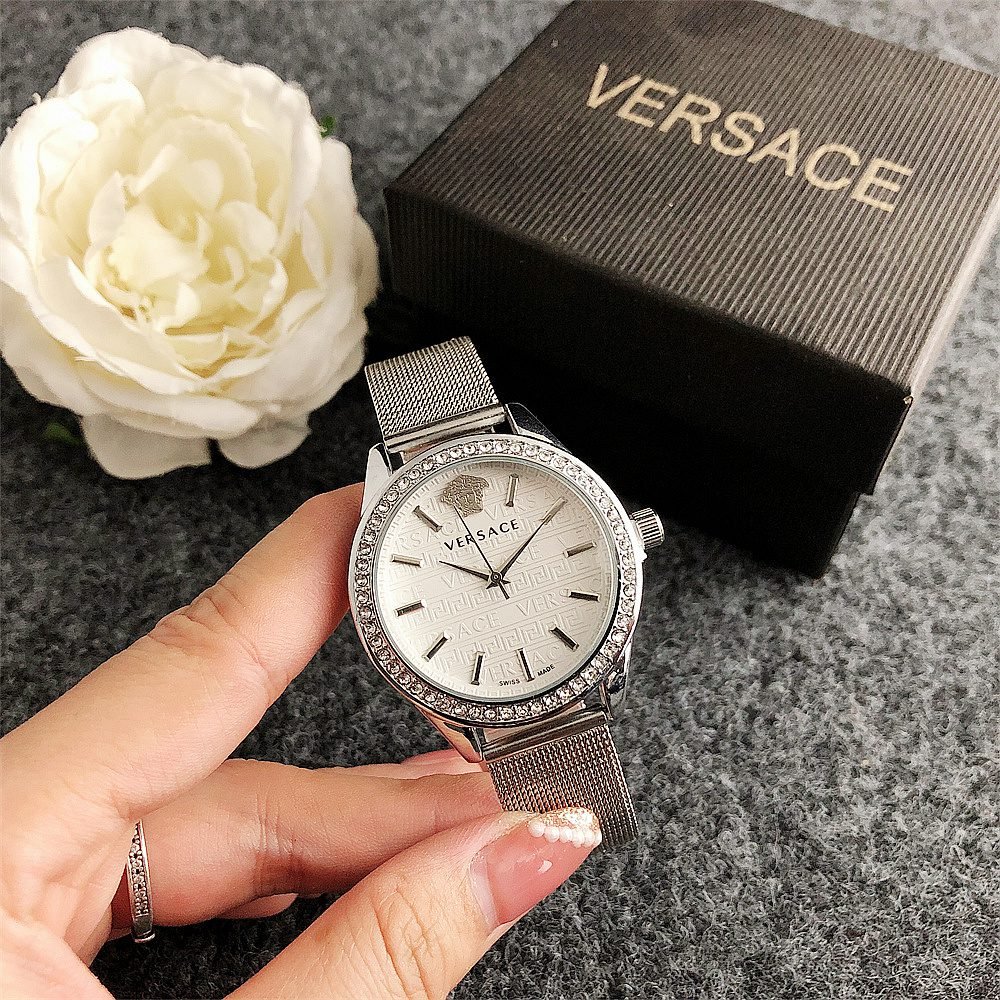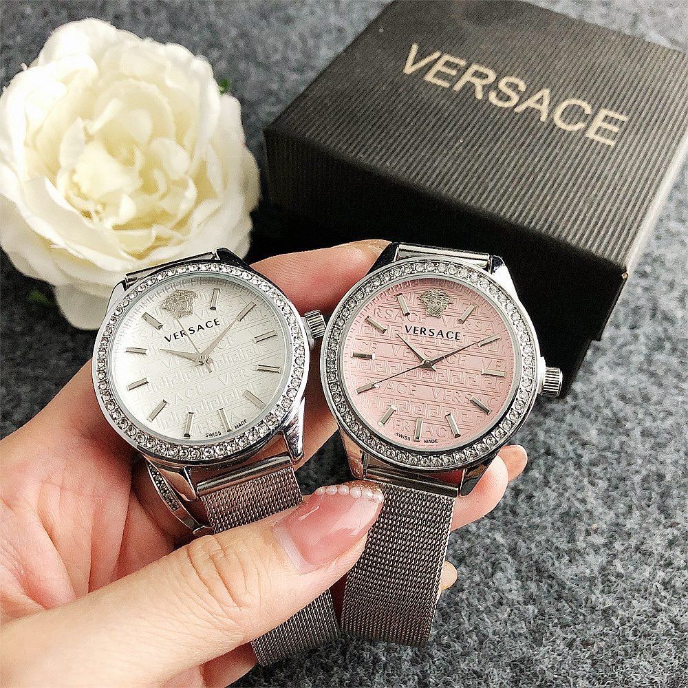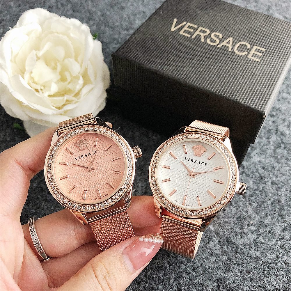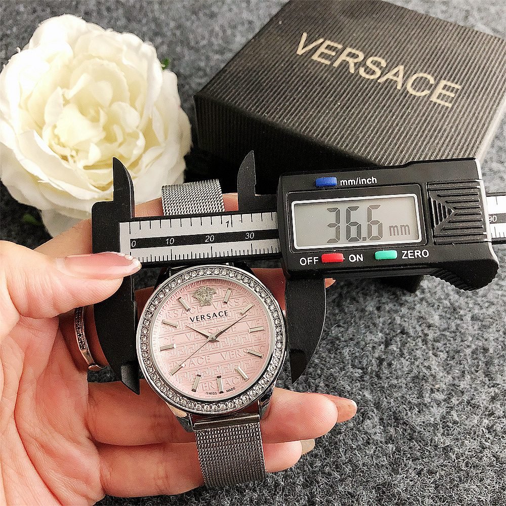 Decoration: The top ring of the watch case is decorated with Greek ripple patterns and Versace logo, showcasing the brand’s unique style.