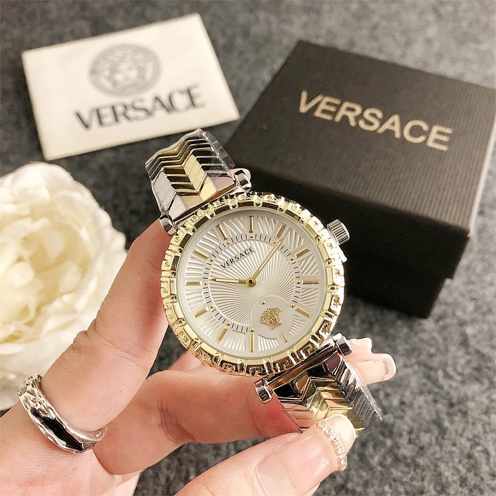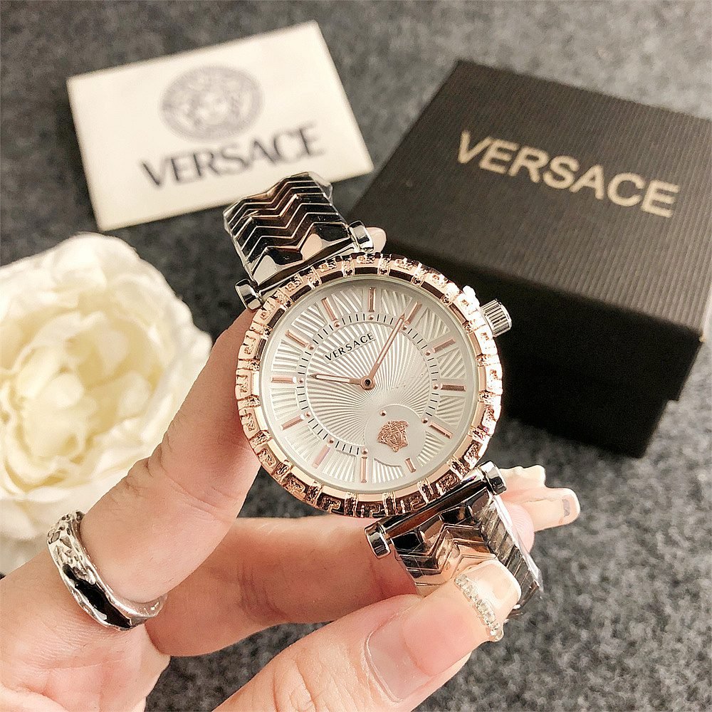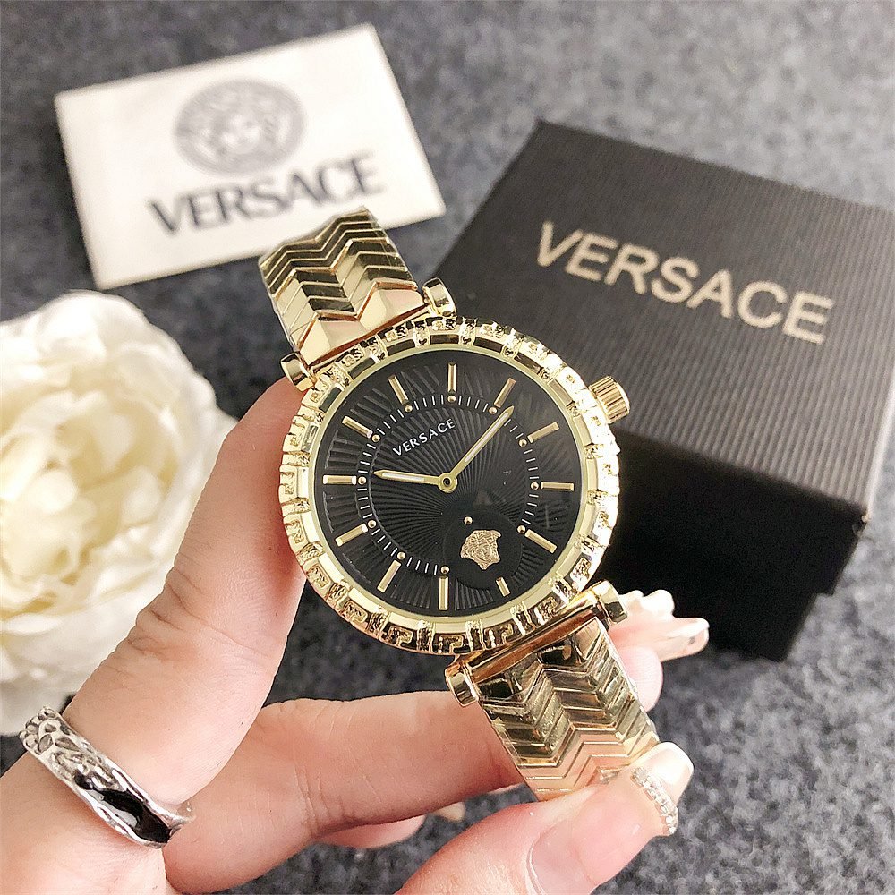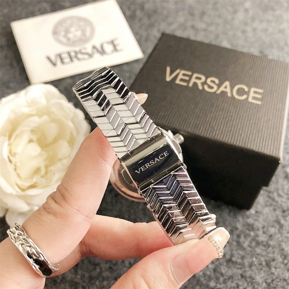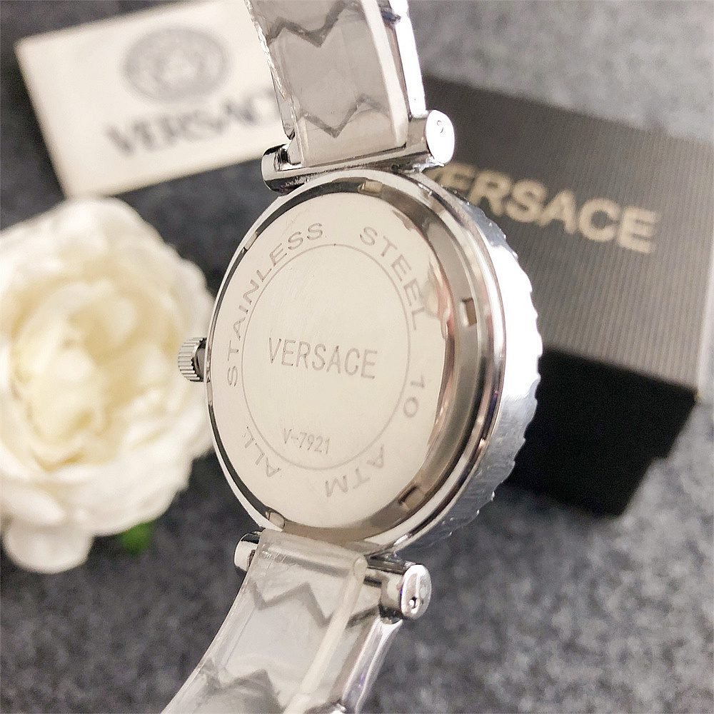 Decoration: The top ring of the watch case is decorated with Greek ripple patterns and Versace logo, showcasing the brand’s unique style.