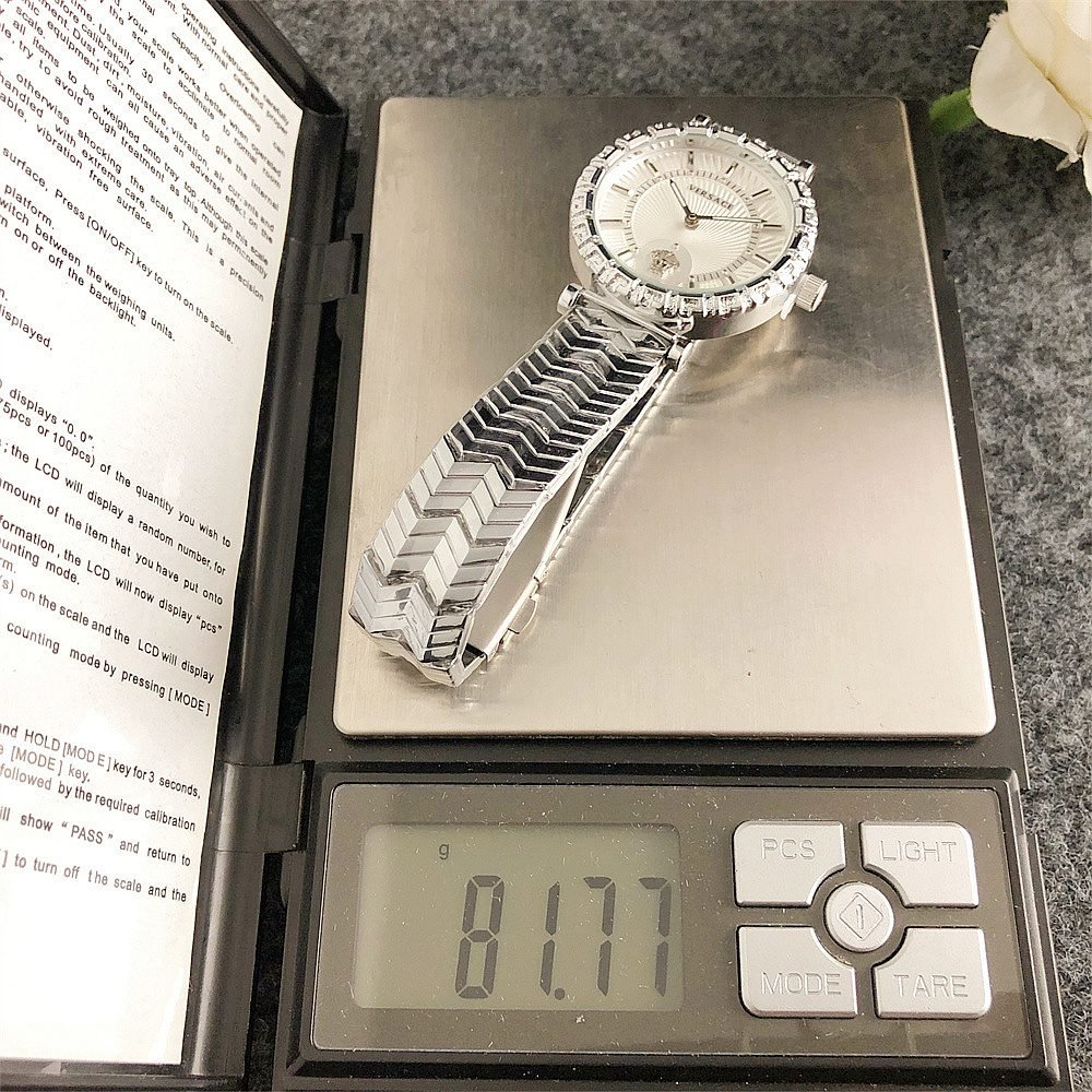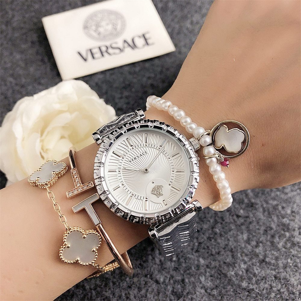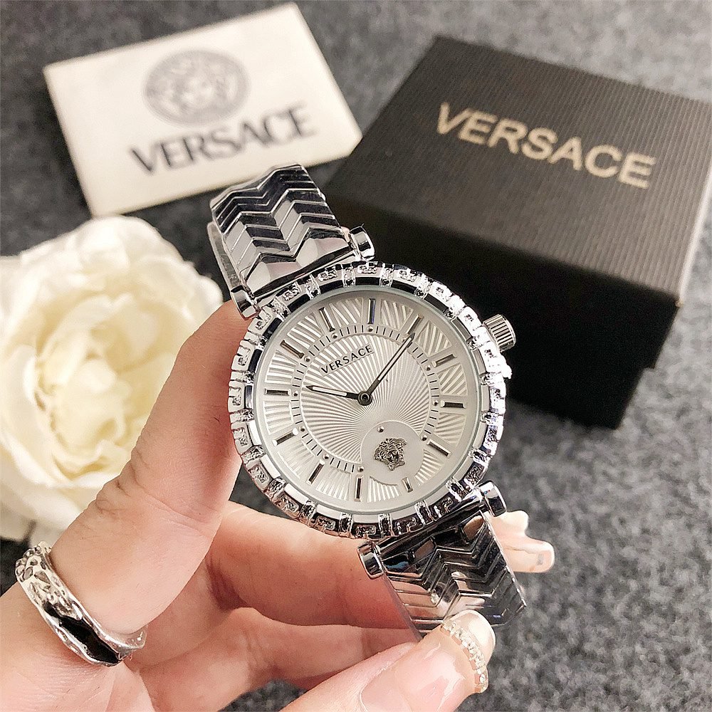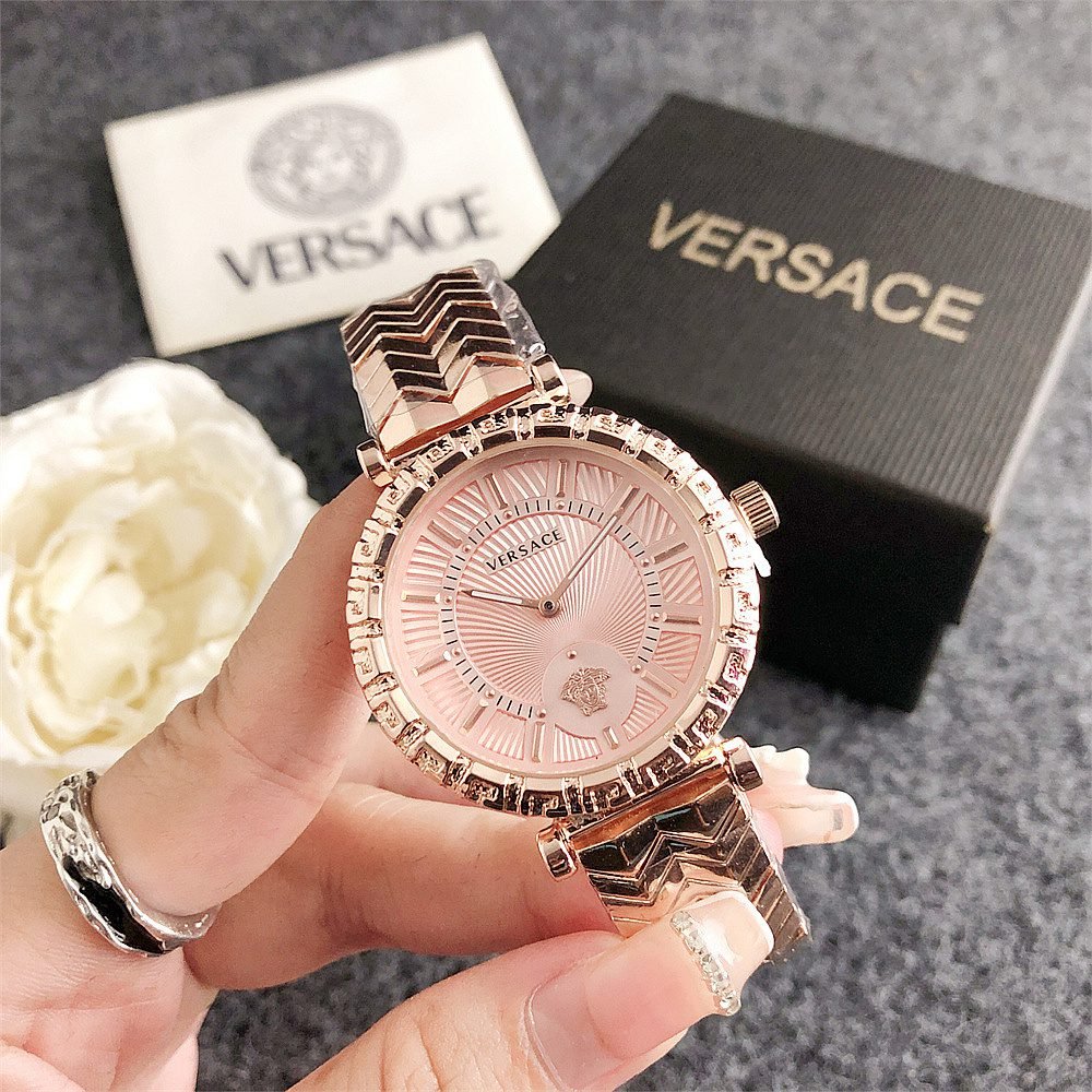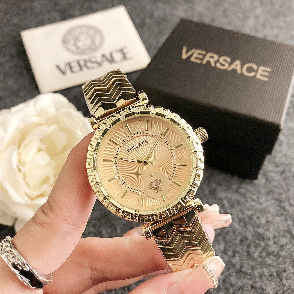 Decoration: The top ring of the watch case is decorated with Greek ripple patterns and Versace logo, showcasing the brand’s unique style.