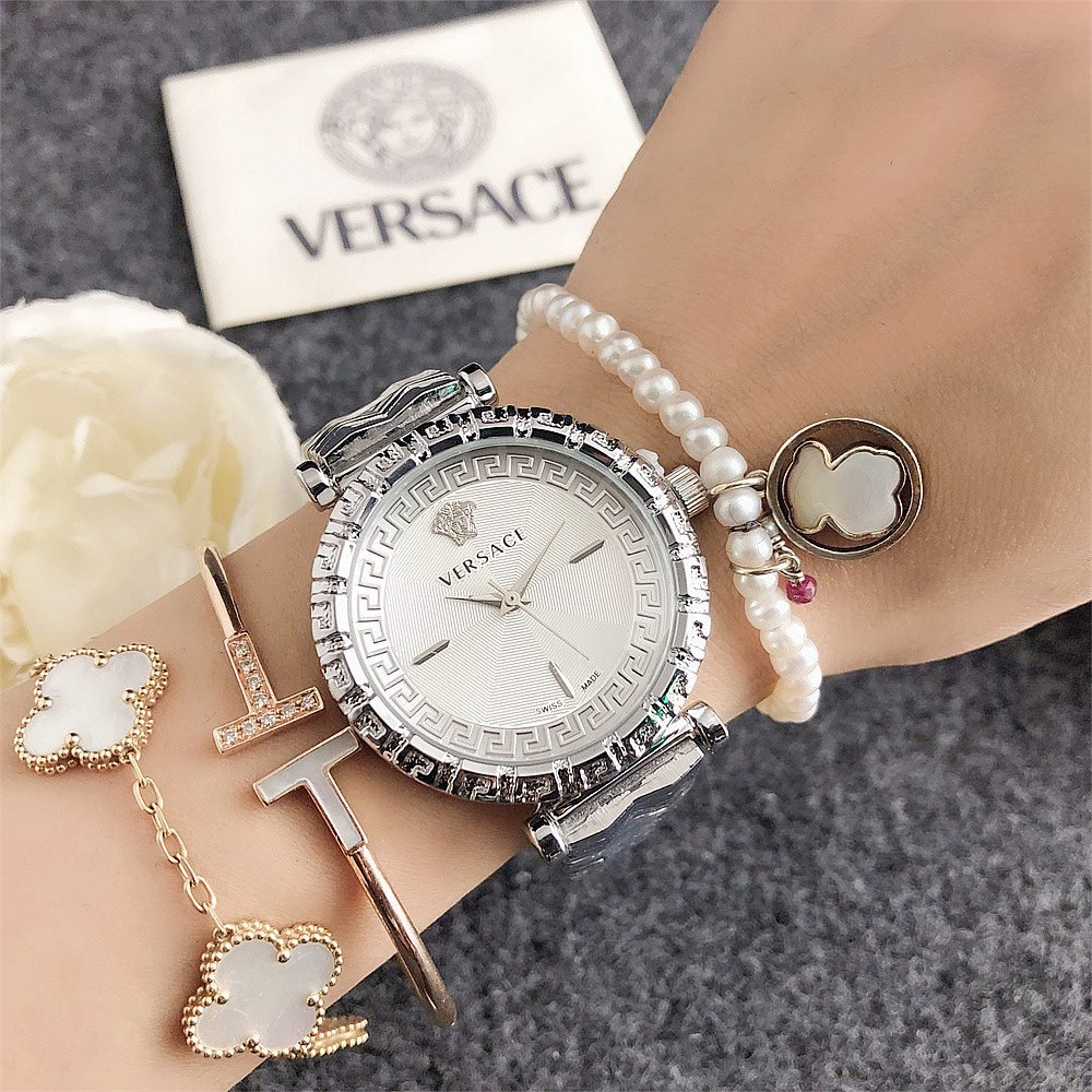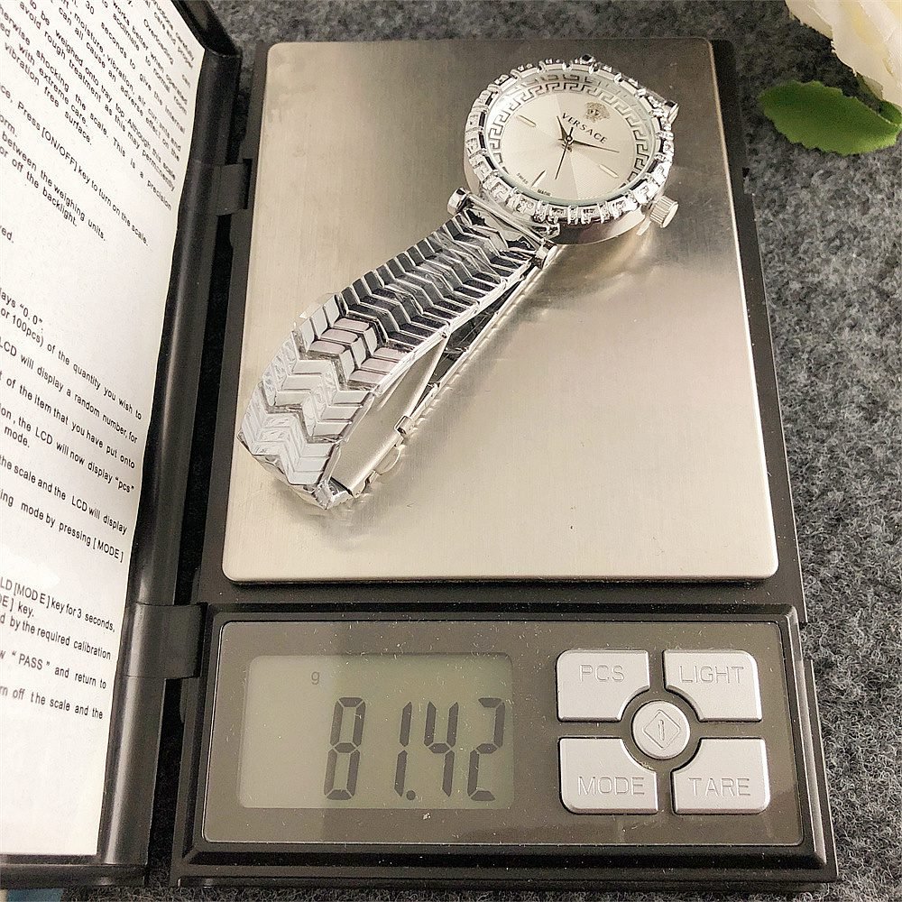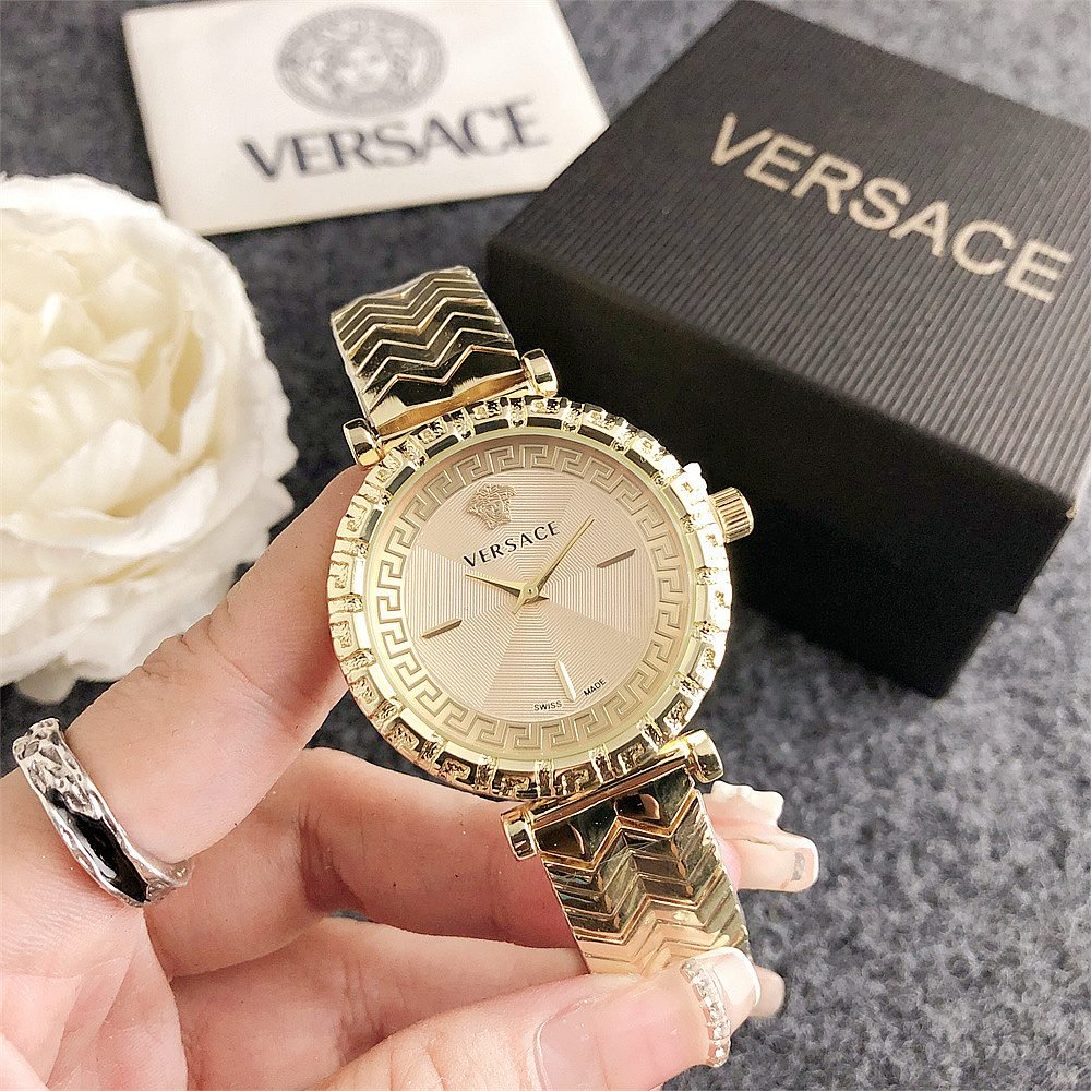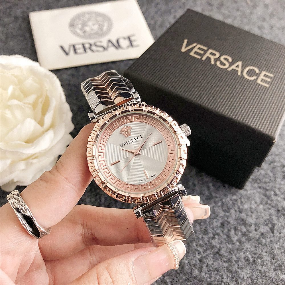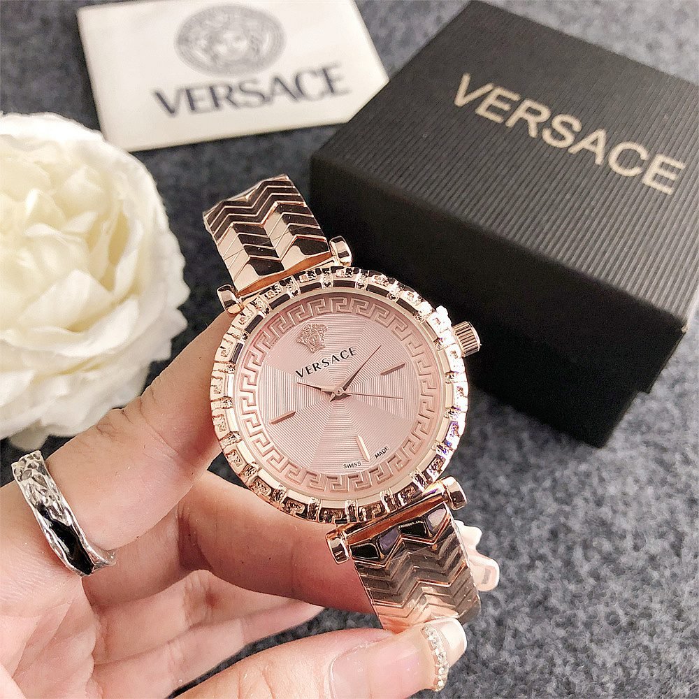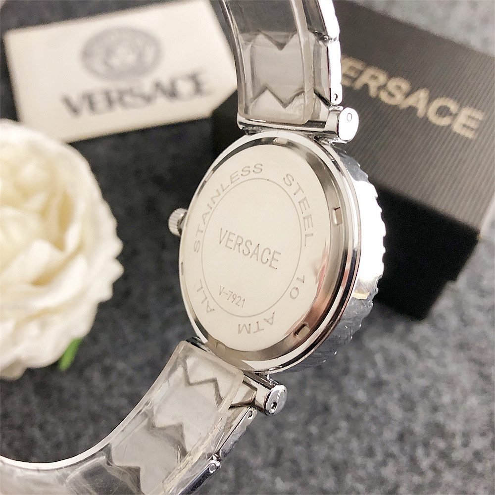 Decoration: The top ring of the watch case is decorated with Greek ripple patterns and Versace logo, showcasing the brand’s unique style.