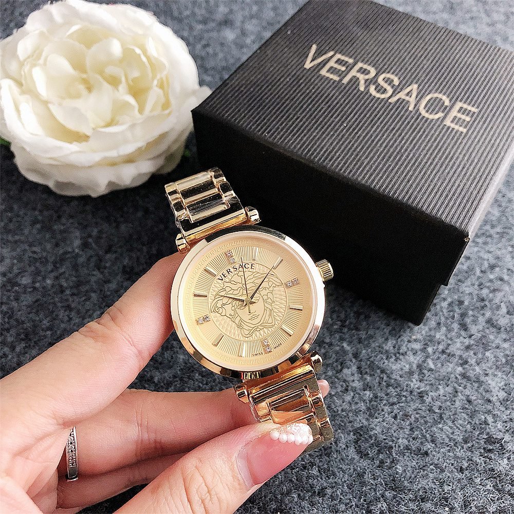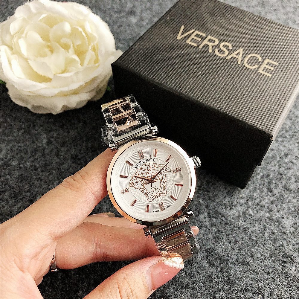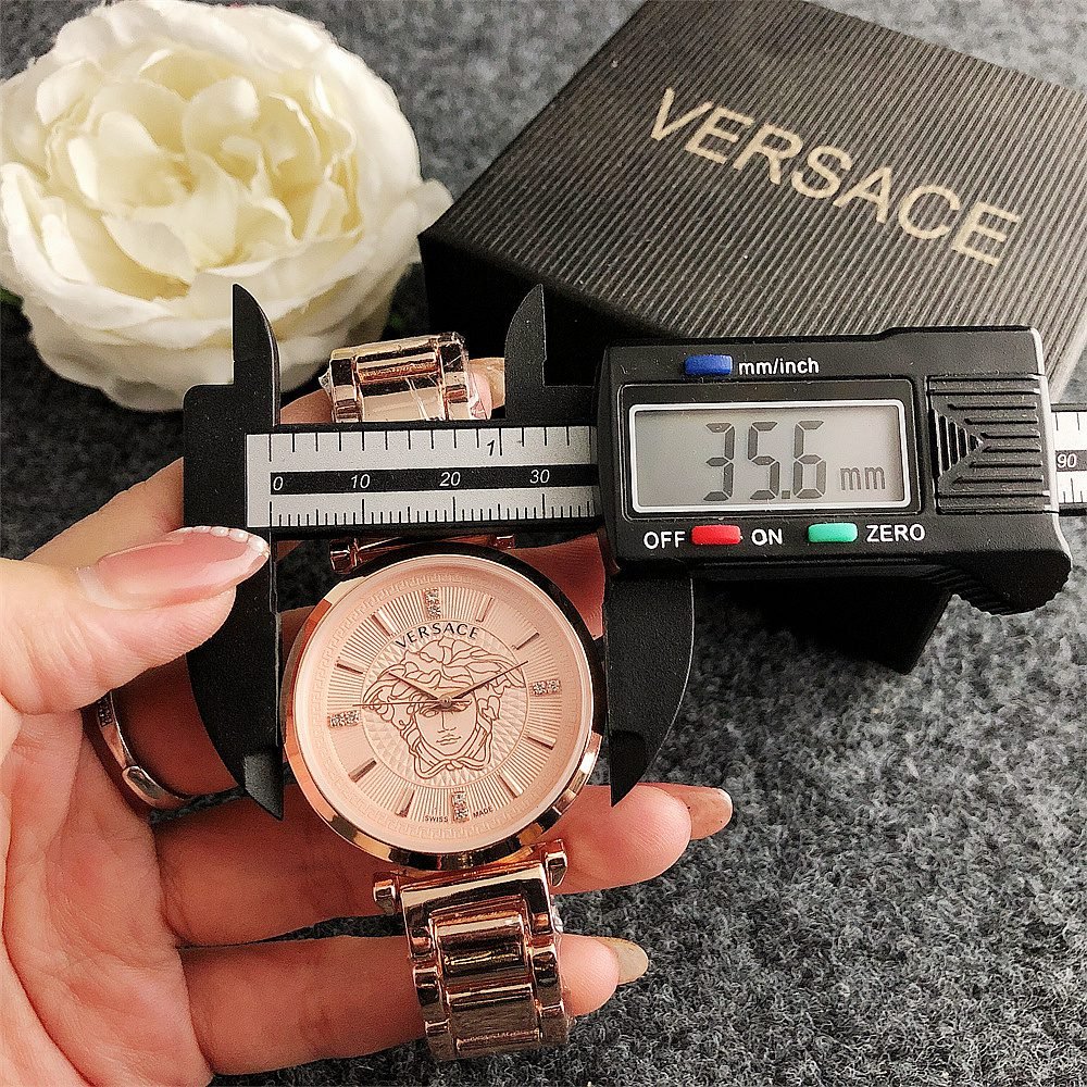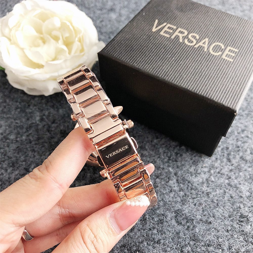 Decoration: The top ring of the watch case is decorated with Greek ripple patterns and Versace logo, showcasing the brand’s unique style.