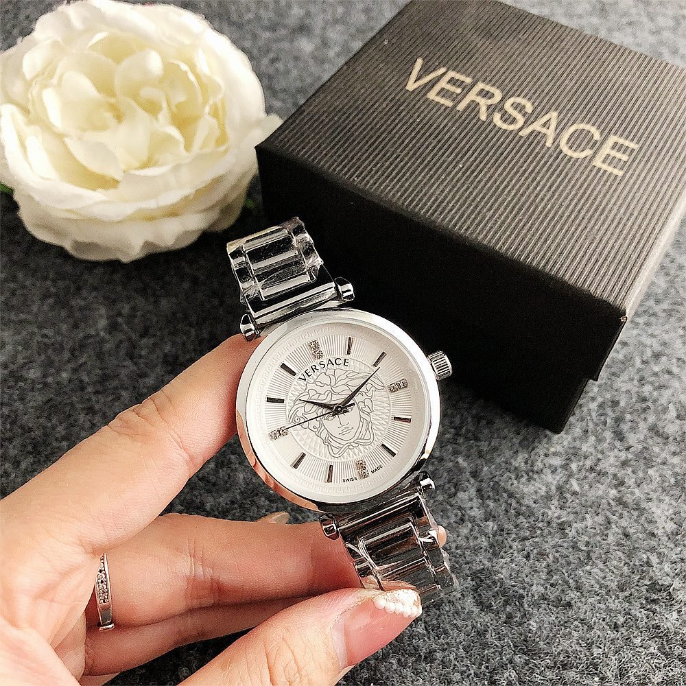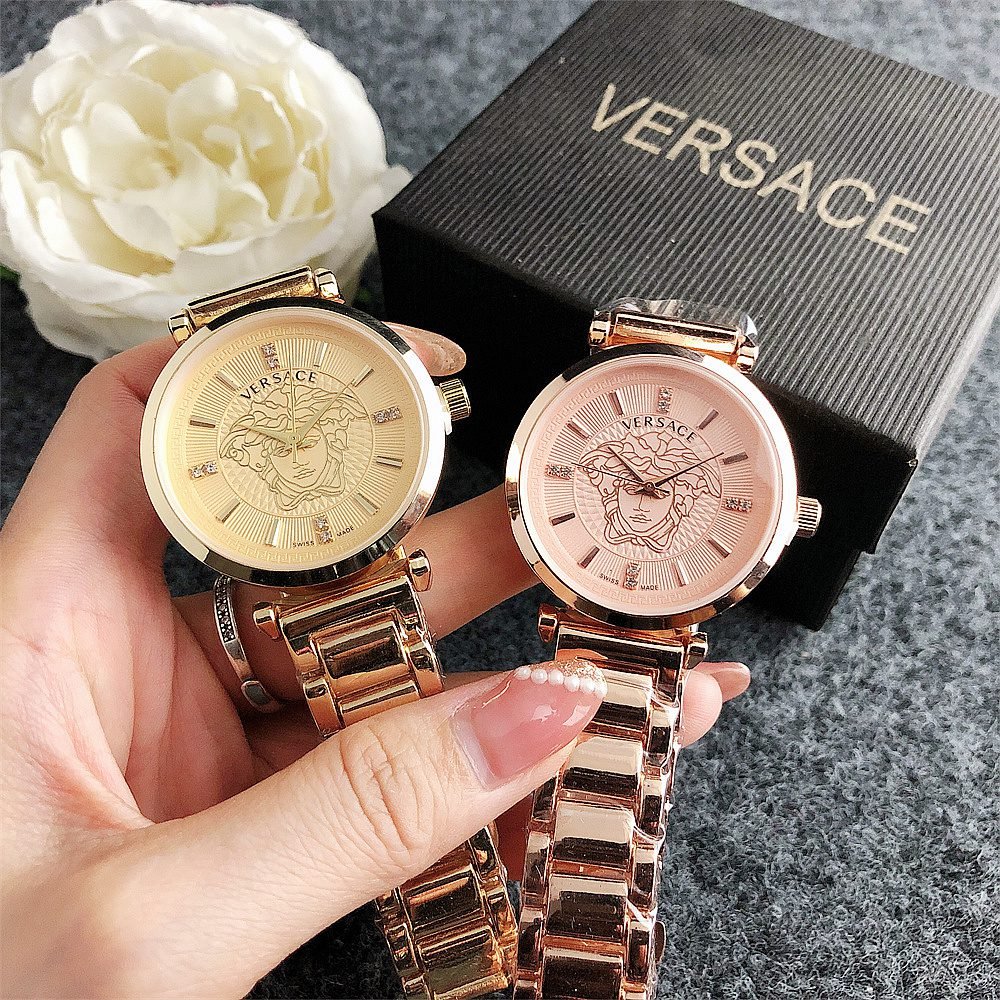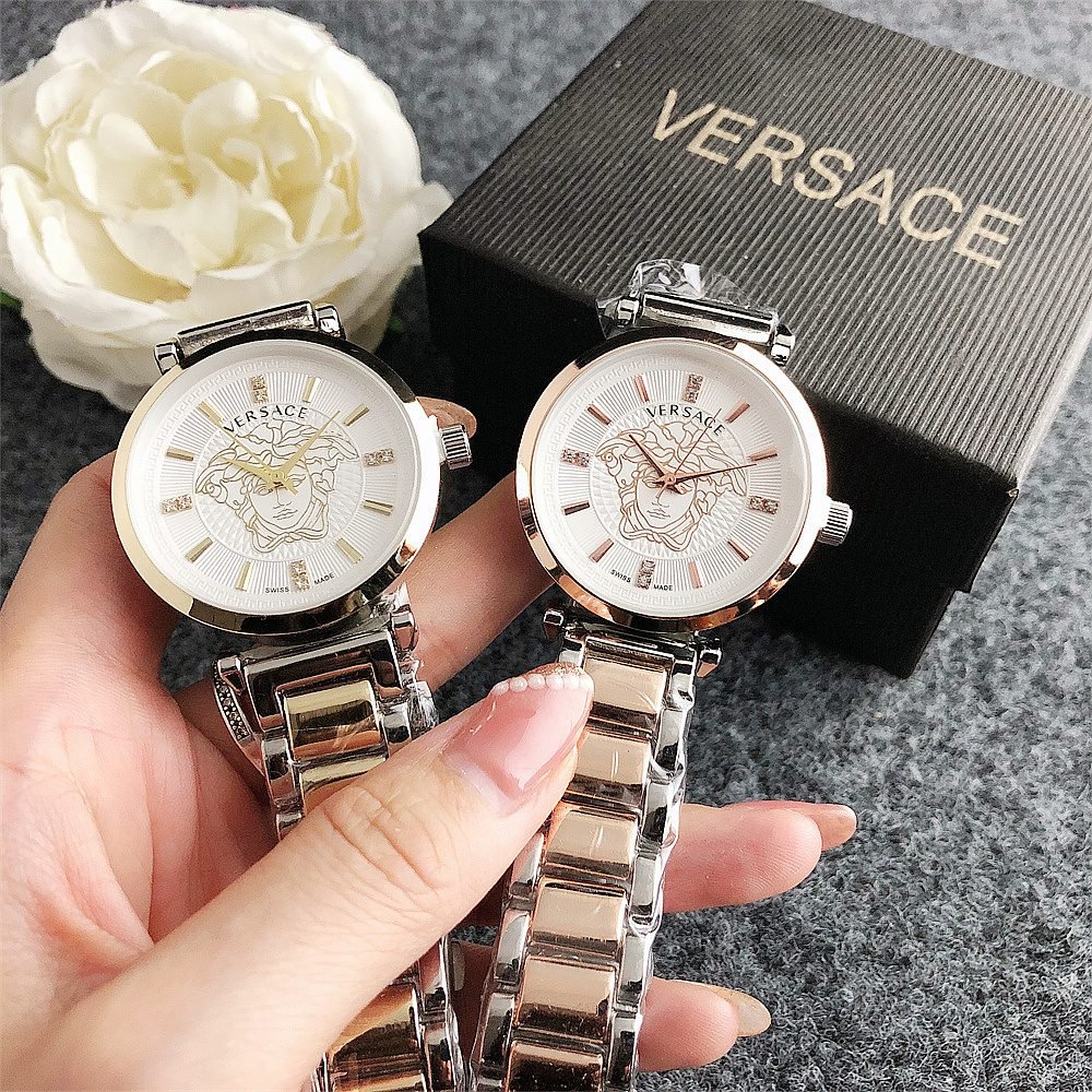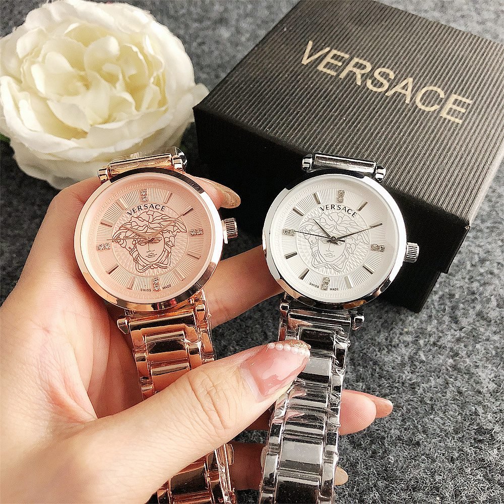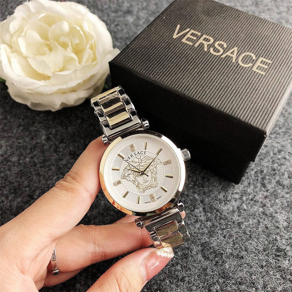 Decoration: The top ring of the watch case is decorated with Greek ripple patterns and Versace logo, showcasing the brand’s unique style.