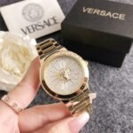 Decoration: The top ring of the watch case is decorated with Greek ripple patterns and Versace logo, showcasing the brand’s unique style.