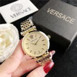 Decoration: The top ring of the watch case is decorated with Greek ripple patterns and Versace logo, showcasing the brand’s unique style.