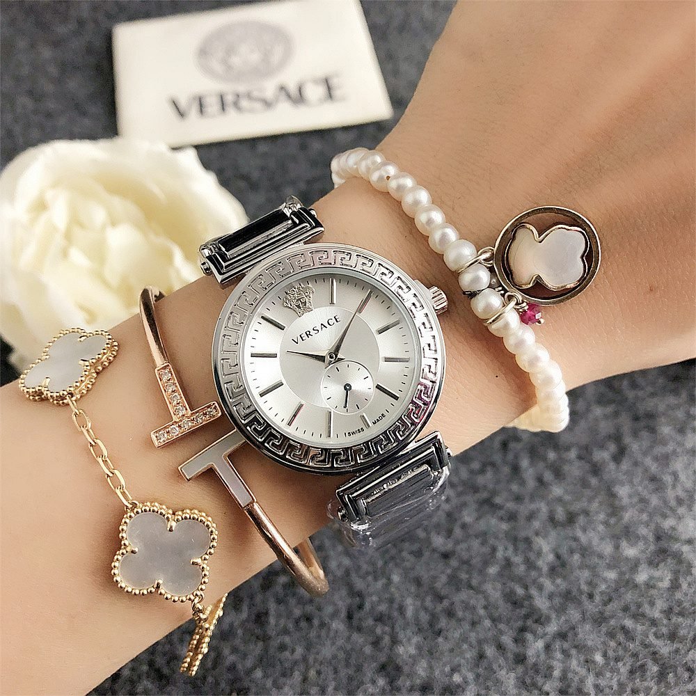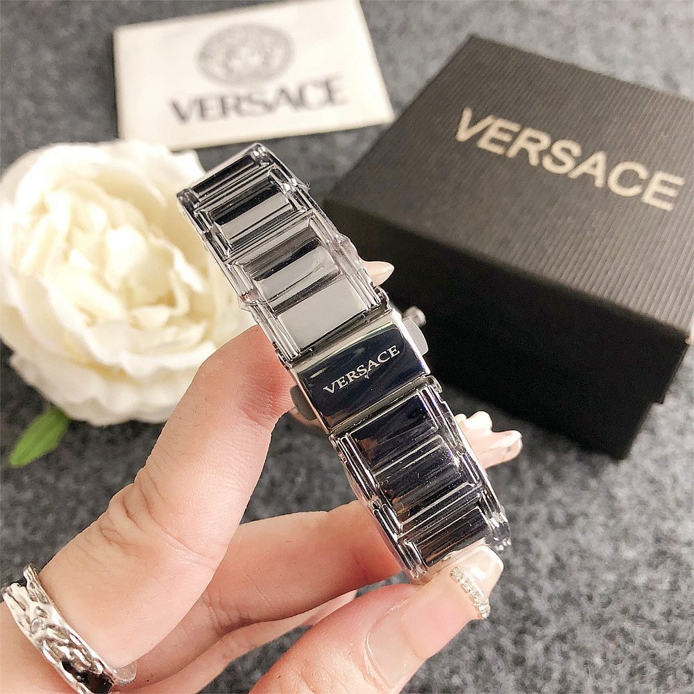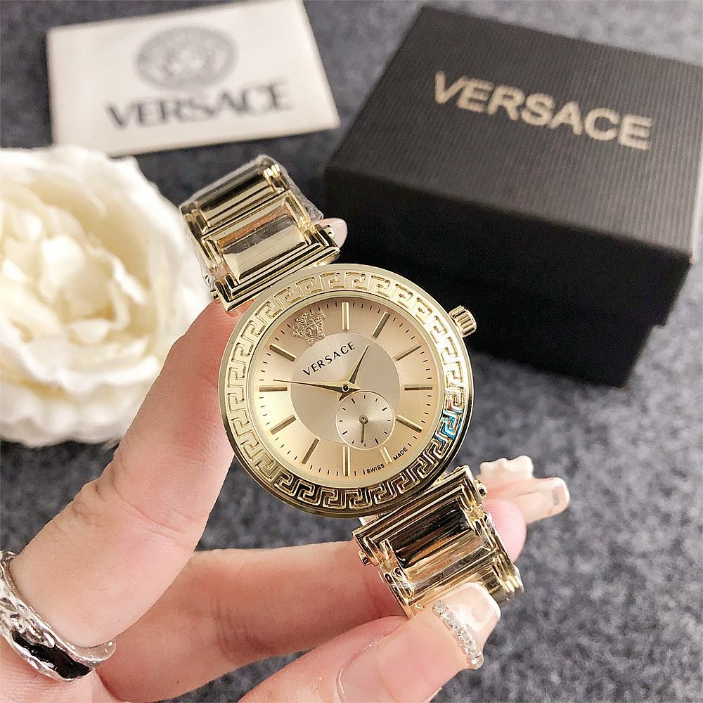 Decoration: The top ring of the watch case is decorated with Greek ripple patterns and Versace logo, showcasing the brand’s unique style.