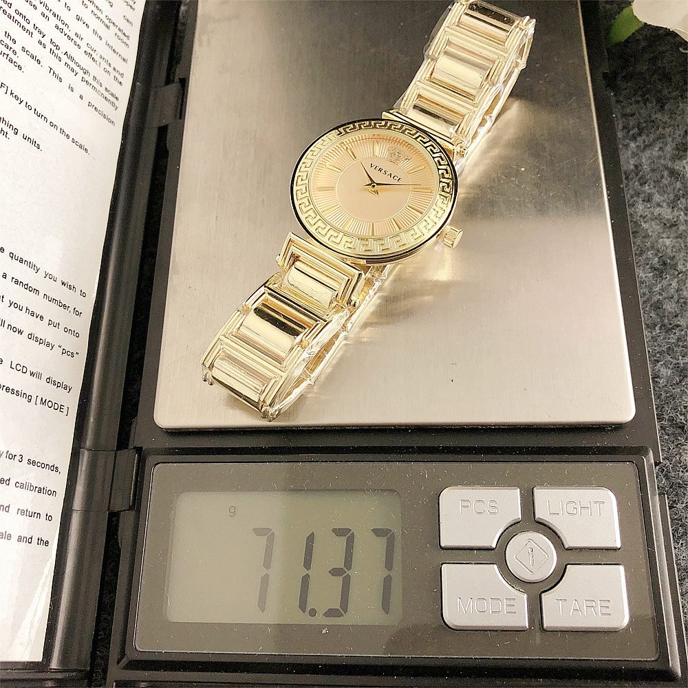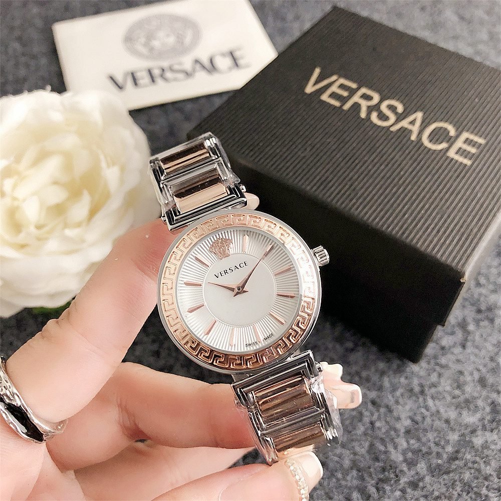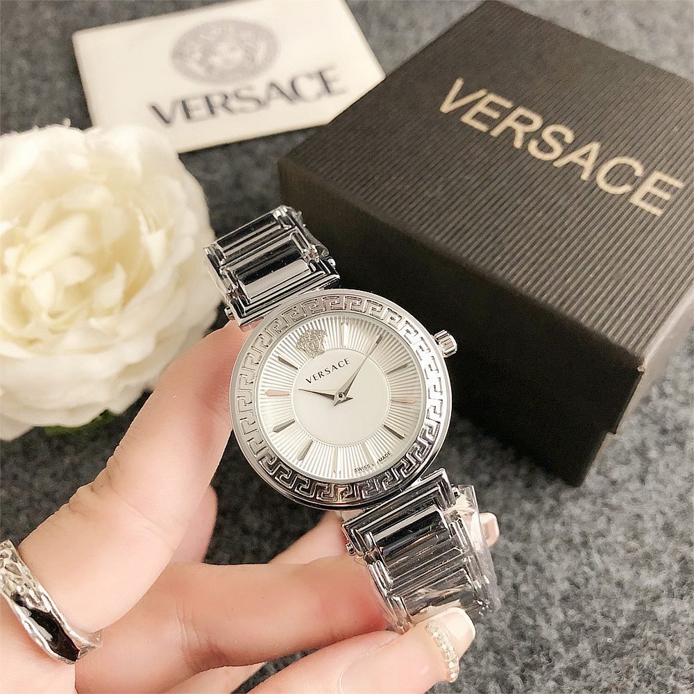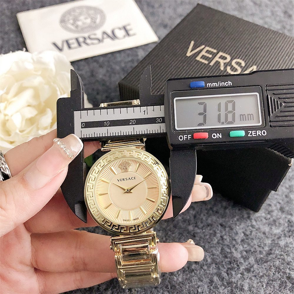 Decoration: The top ring of the watch case is decorated with Greek ripple patterns and Versace logo, showcasing the brand’s unique style.