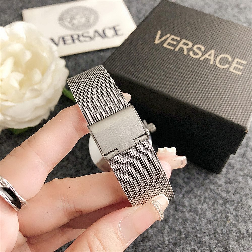 Decoration: The top ring of the watch case is decorated with Greek ripple patterns and Versace logo, showcasing the brand’s unique style.