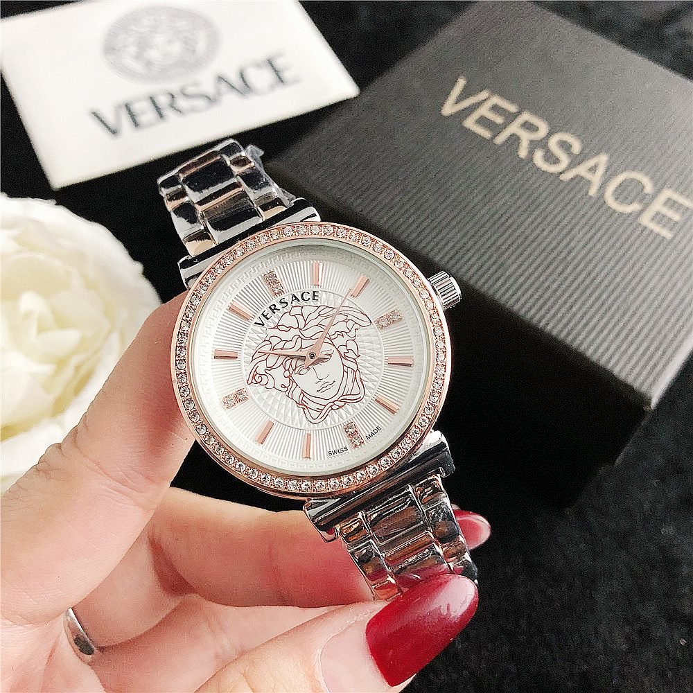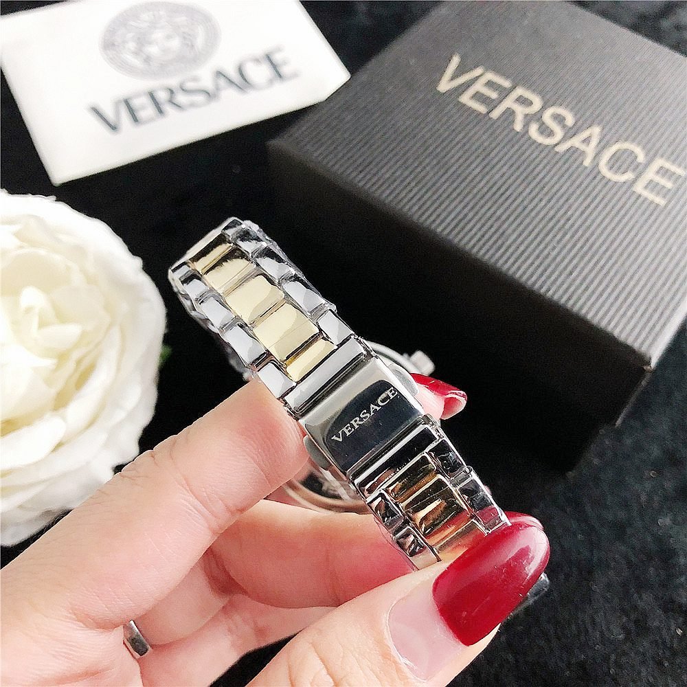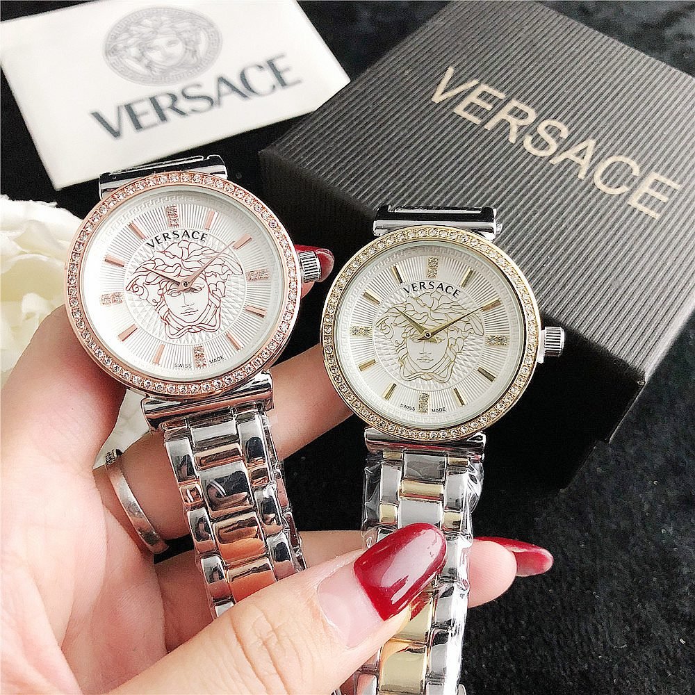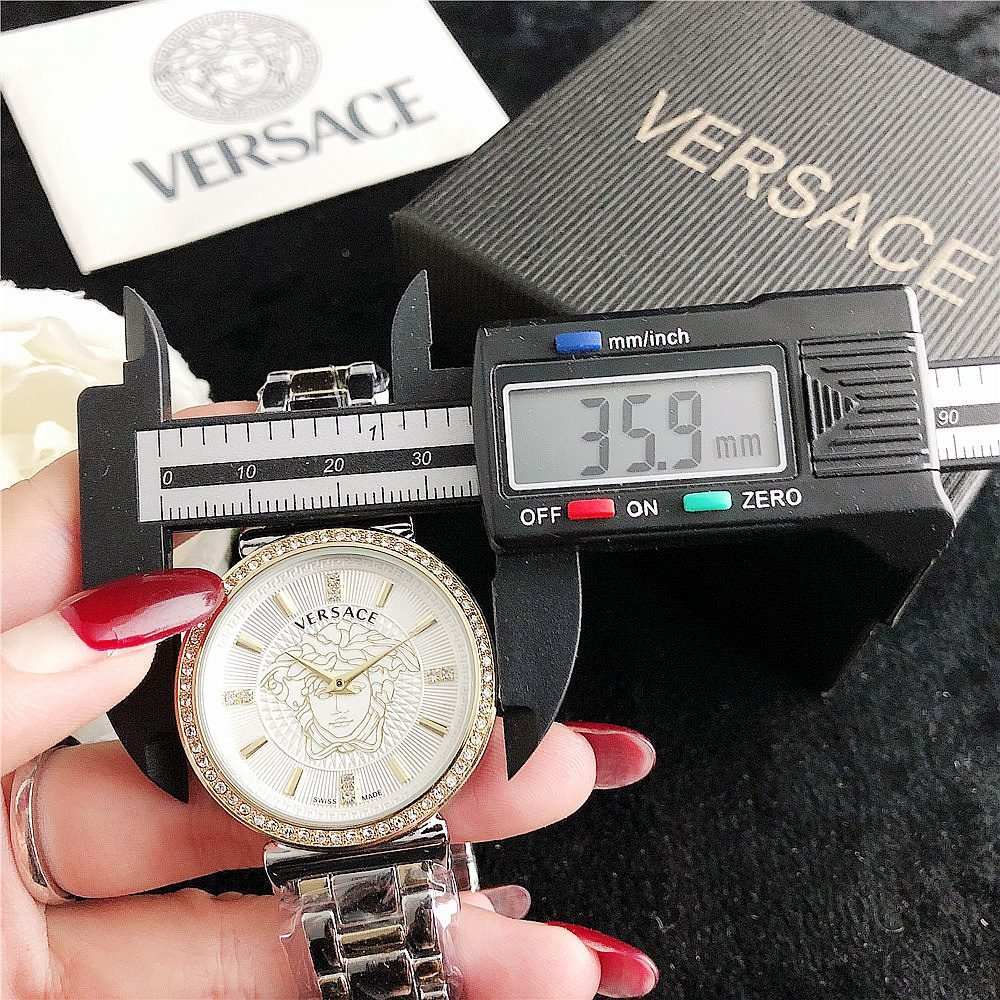 Decoration: The top ring of the watch case is decorated with Greek ripple patterns and Versace logo, showcasing the brand’s unique style.