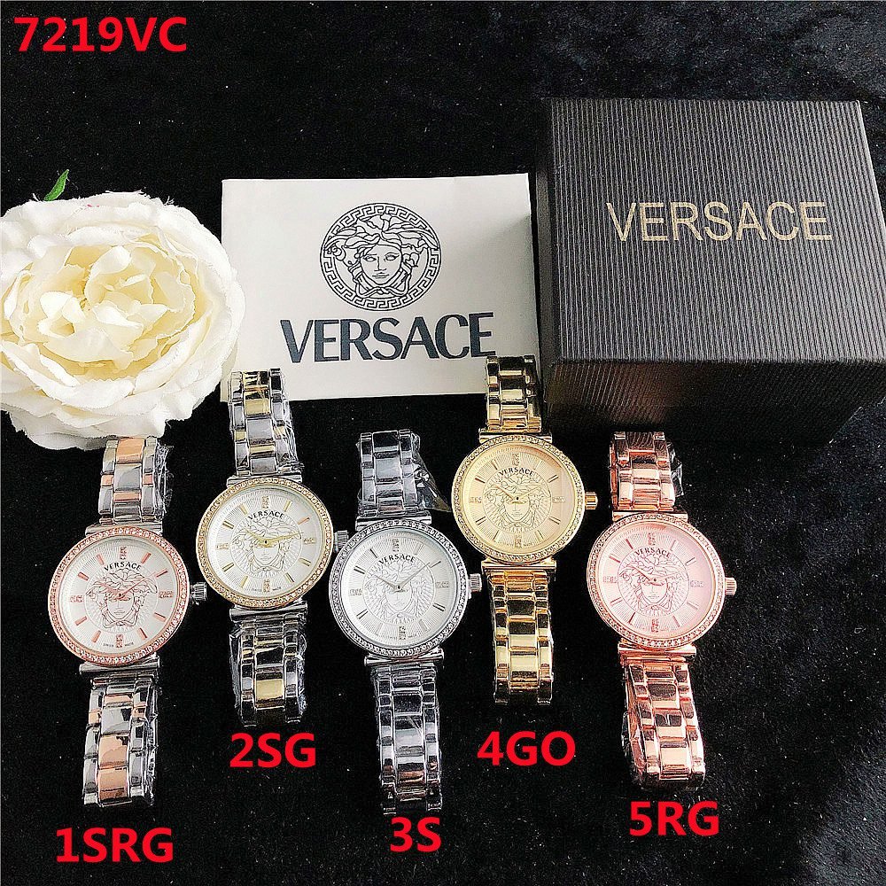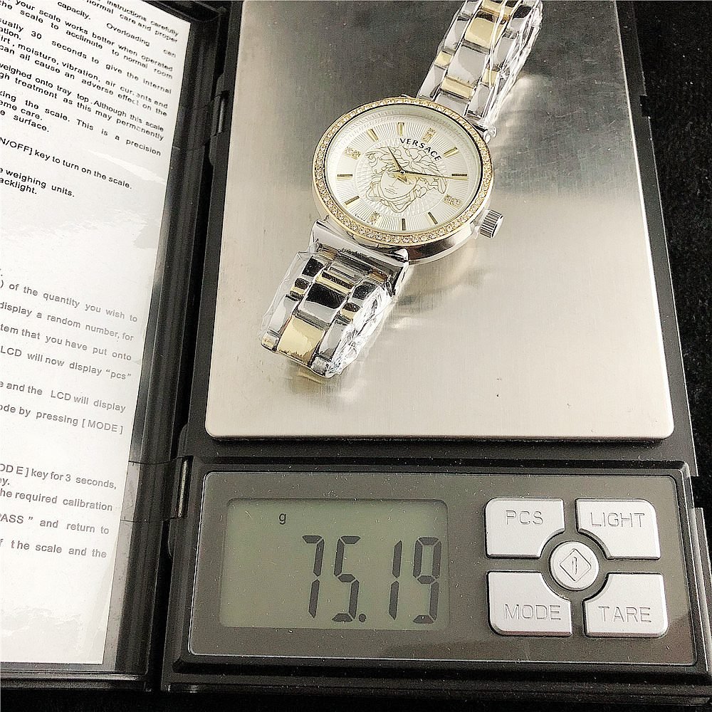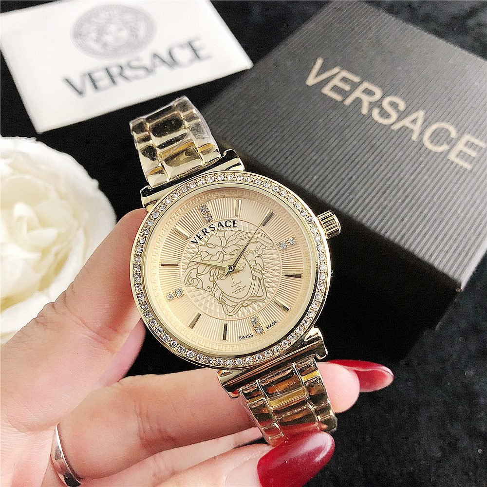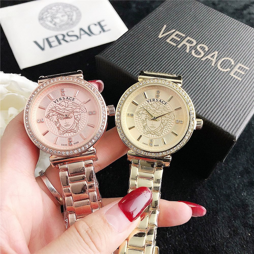 Decoration: The top ring of the watch case is decorated with Greek ripple patterns and Versace logo, showcasing the brand’s unique style.