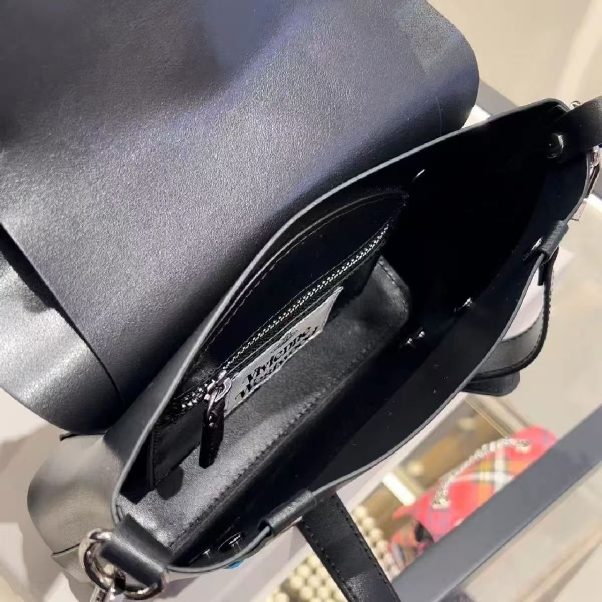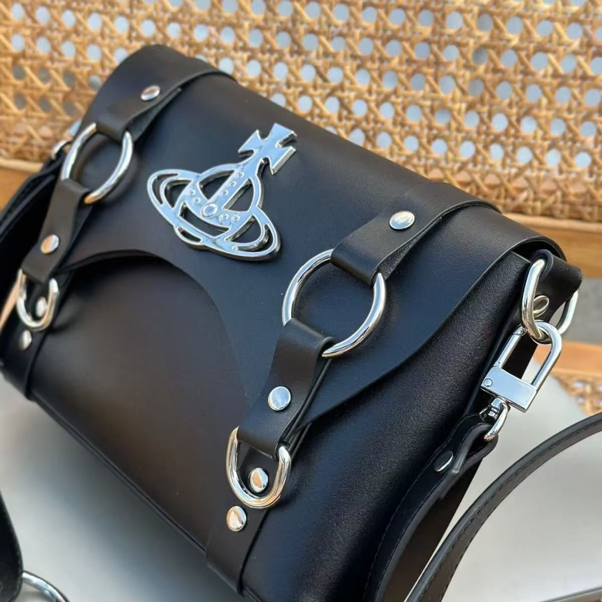 From the iconic design of British punk godmother Vivienne Westwood, this biker bag is made of tough black cowhide, which is stiff and wear-resistant. The center of the bag is inlaid with the brand’s classic Saturn metal buckle, paired with punk-style metal rings and rivet elements, showing rebellious personality in dark coolness. It can be carried on one shoulder, and the three-dimensional bag shape can hold daily personal items. It is an eye-catching item for street fashionistas and punk lovers to create a unique style, allowing you to stand out easily in the crowd and interpret Vivienne Westwood’s avant-garde fashion attitude.