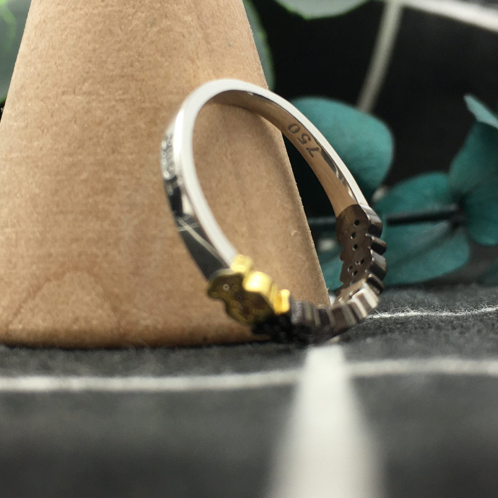 TOUS Fancy wedding band in 18kt white and yellow gold with diamonds, black diamonds, sapphires and tsavorites. Total weight: 0.12ct.