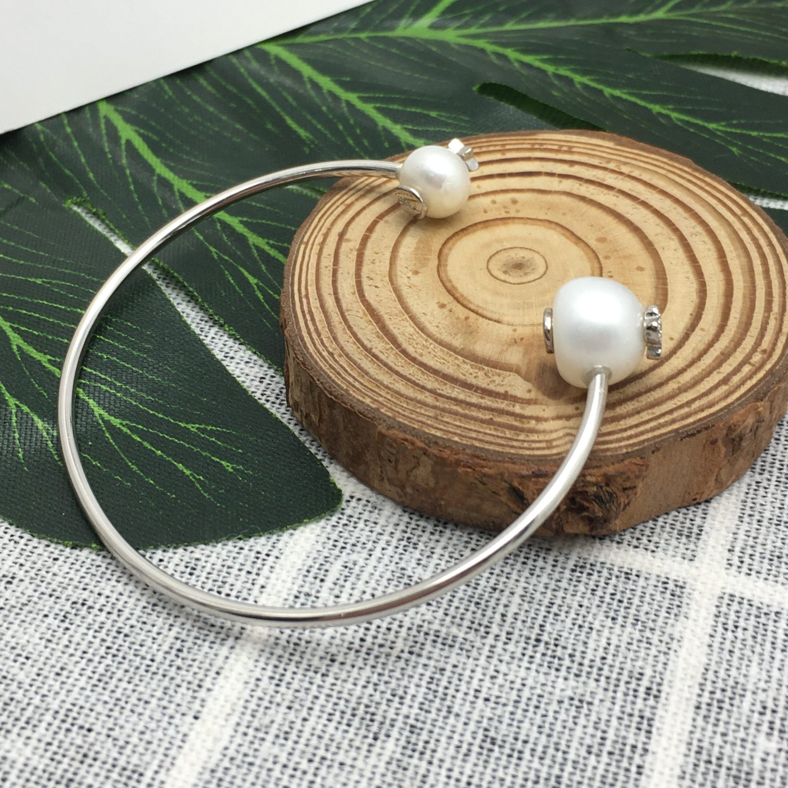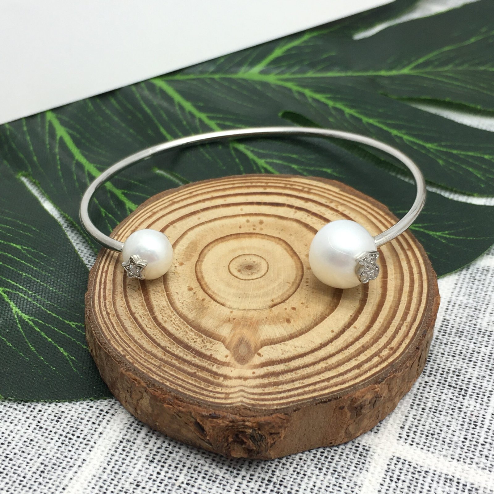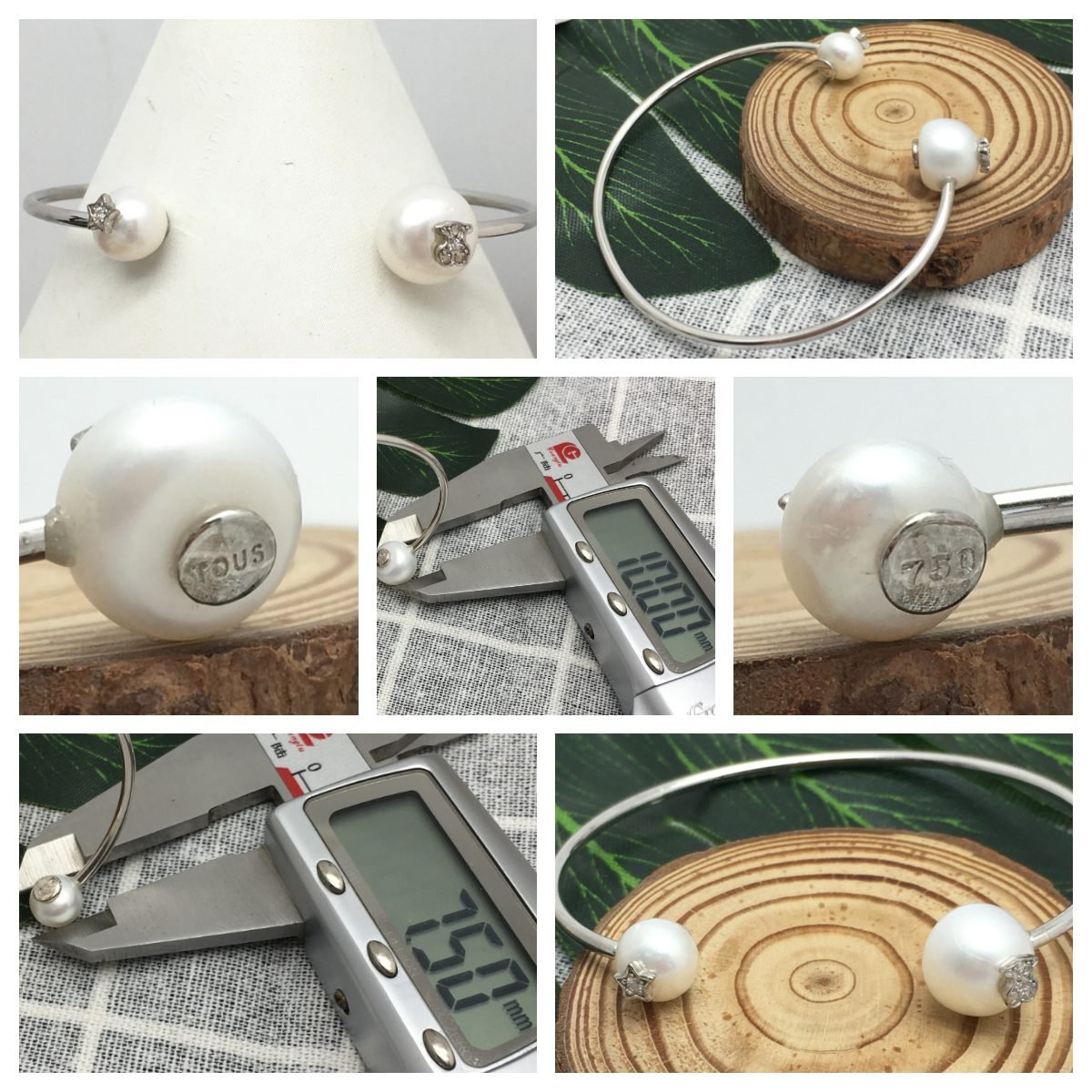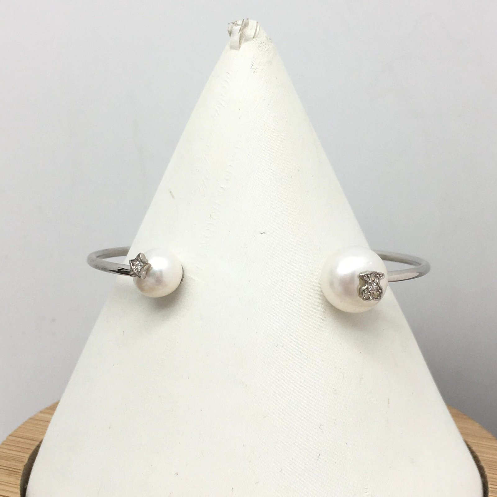 TOUS Puppies bangle in 18kt white gold, cultured pearl and diamonds. Total weight: 0.02ct. Pearl: 0.75-1 cm.
