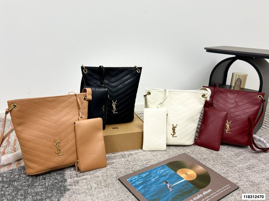 This YSL quilted bucket bag collection features the brand’s iconic YSL logo, crafted from premium leather with a structured silhouette of 25×30cm, complemented by detachable pouches and adjustable straps. Embodying YSL’s legacy of Parisian elegance and functional luxury, the bags are available in sophisticated hues like tan, black, white, and burgundy. Merging timeless design with ample storage, they’re perfect for those who appreciate iconic branding, meticulous craftsmanship, and a versatile bag that seamlessly transitions from work to leisure, elevating every look with understated yet undeniable chicness.
