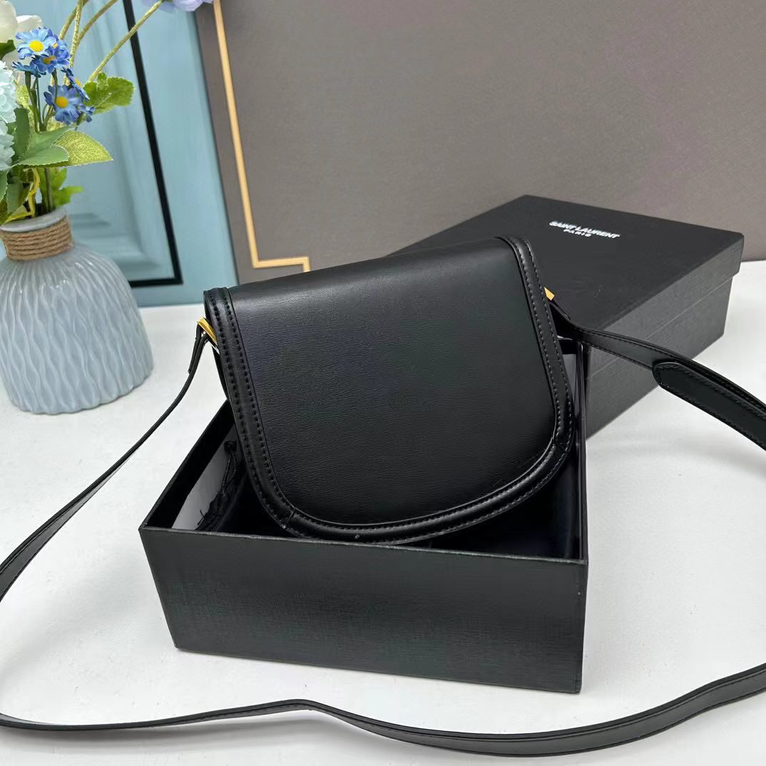 YSL saddle cowhide leather shoulder bag 0233 black size: 19*16*6cm
