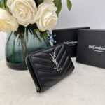 SLP brief paragraph cone zipper wallet ???? used the black particle texture cowhide leather, with the golden tones metal coupling YSL logo ✅ side open six ⃣ ️ screens, 1 ⃣ ️ coin bag ???? ???? model no. : 1890 size: 12 * 10 * 3 cm ???? 168220