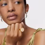 Explore the new Yunque collection, inspired by the green of the mountains and nature. Buy the openwork signet ring with 18 kt gold plating on silver and mother-of-pearl and always carry Puerto Rico with you.