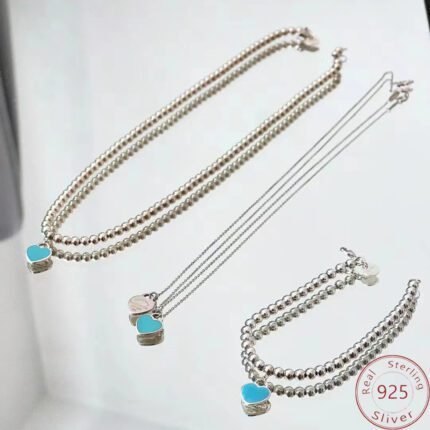 Serie de joyas con colgante de corazón azul Tiffany Pulsera-collar Tiffany blue heart pendant jewelry series Bracelet-necklace     If